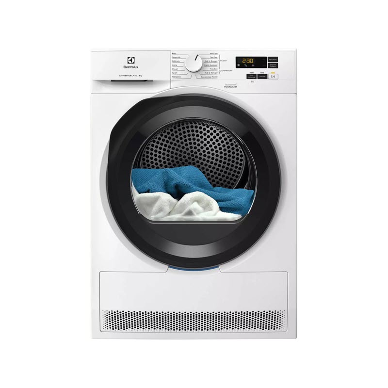 - Technologie : pompe à chaleur GentleCare pour un séchage à basse température et respectueux du linge