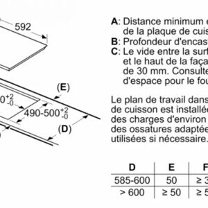 Taille de niche requise pour l’installation (HxLxP mm) : 51 x 560 x (490 – 500)