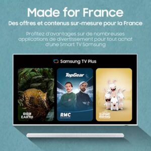 - Fonctionnalités : Click to Search – Generative Wallpaper – contrôle vocal (Bixby, Alexa) – prise en main à distance – compatibilité Matter Smart Home