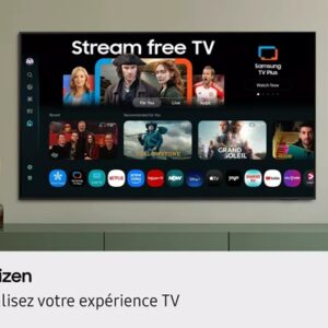 - Smart TV : One UI 2025 – apps opérateurs (B.TV+, Orange TV, Oqee, SFR TV) – SmartThings Hub – AirPlay – Multi View 2 écrans – mises à jour 7 ans